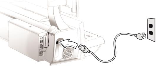 Die Netzkabelbuchse befindet sich an der Rückseite des Systems unten links. Hier wird das Netzkabel (im Lieferumfang) angeschlossen.